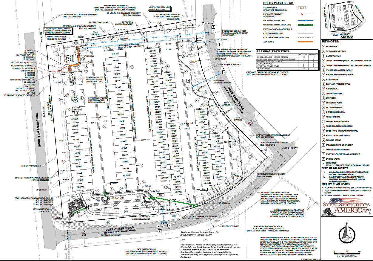 Giant Storage in Monument demonstrates our capability in designing accessible, secure, and scalable self‑storage facilities for developers, investors, and storage operators. Located at 18910 Base Camp Road, this project features over one hundred ground-level, drive-up units within a fully fenced, well-lit property, complete with 24/7 electronically monitored gate access and video surveillance.